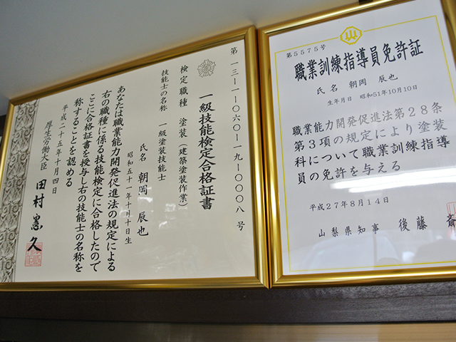 朝岡塗装株式会社はキャリア20年以上の一級塗装技能士が在籍しています。